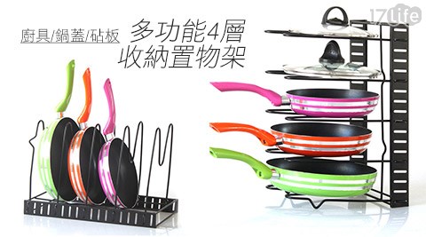 多功能4層廚具鍋蓋砧板收納置物架